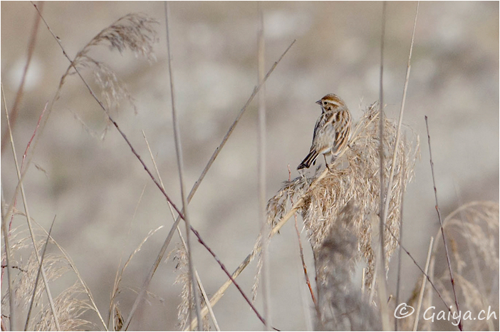 Couple Centre Pro Natura de Champ-Pittet (VD), Décembre 2013 - Référence: 546- NIKON D7000, à 500 mm (750 mm), f/8.0, 1/1250 s, 1600 ISO Bruant des roseauxEmberiza schoeniclus