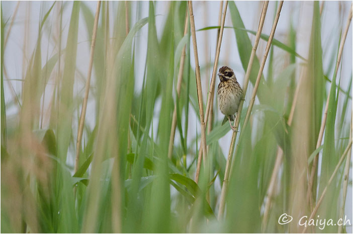 Chablais de Cudrefin (VD), Mai 2014 - Référence: 564- NIKON D7000, à 500 mm (750 mm), f/5.0, 1/1250 s, 500 ISO Bruant des roseauxEmberiza schoeniclus