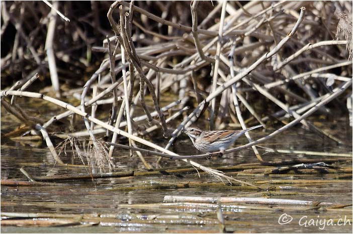 Marais de Sionnet (GE), Avril 2012 - Référence: 207- NIKON D7000, à 500 mm (750 mm), f/9.0, 1/250 s, 250 ISO Bruant des roseauxEmberiza schoeniclus