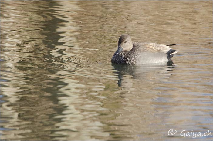 Femelle Retenue du barrage de Verbois (GE), Janvier 2012 - Référence: 18- NIKON D7000, à 500 mm (750 mm), f/4.5, 1/500 s, 400 ISO Canard chipeauAnas strepera