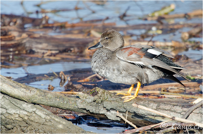 Vieille Thielle (NE), Mars 2015 - Référence: 604- NIKON D7000, à 500 mm (750 mm), f/4.5, 1/1000 s, 1600 ISO Canard chipeauAnas strepera