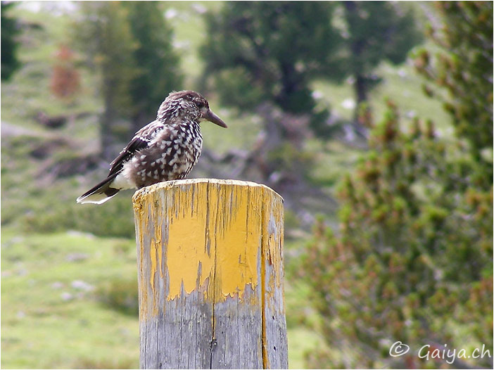 Parc National Suisse (GR), Juillet 2009 - Référence: 365- COOLPIX S10, à 253.3 mm (380 mm), f/4.0, 1/170 s, 50 ISO Cassenoix mouchetéNucifraga caryocatactes
