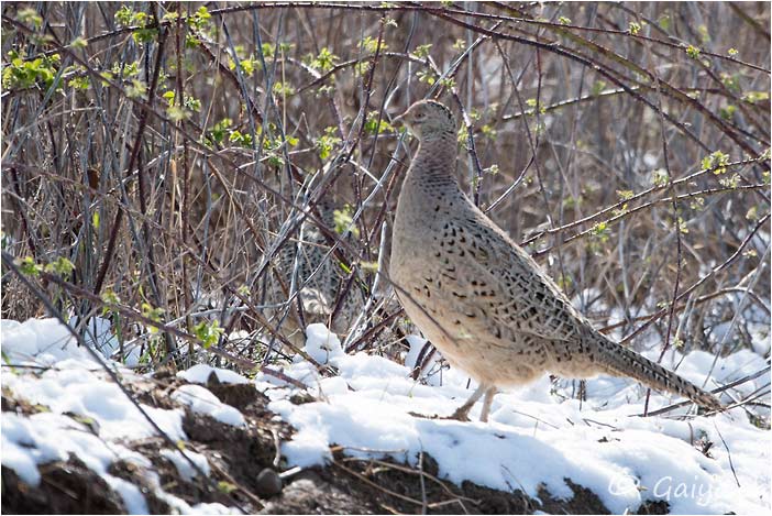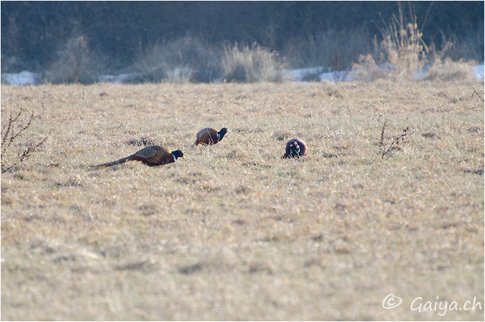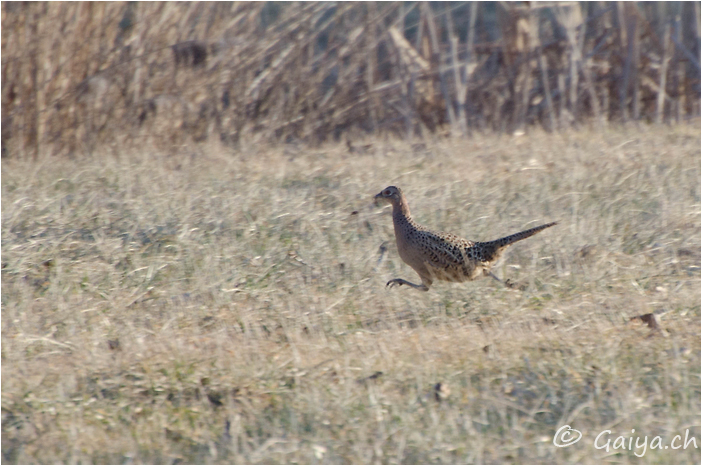 Femelle Marais de Sionnet (GE), Février 2012 - Référence: 70- NIKON D7000, à 300 mm (450 mm), f/5.6, 1/400 s, 400 ISO Faisan de colchidePhasianus colchicus
