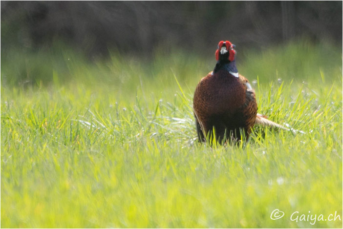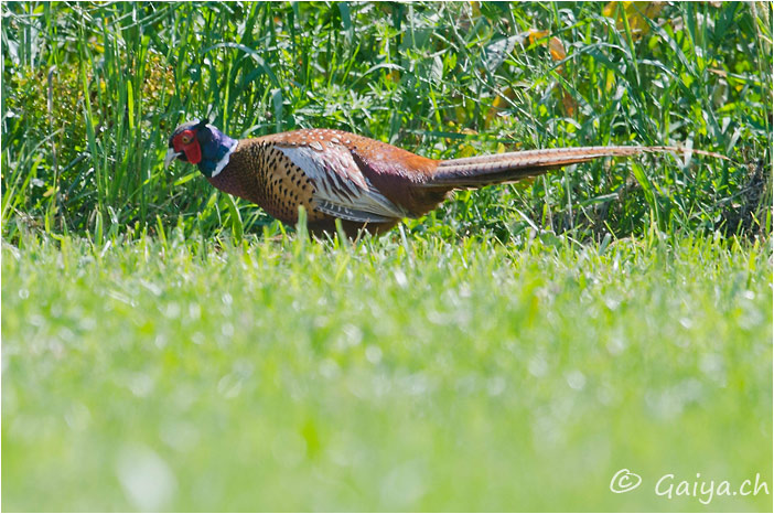 Bois de Jussy (GE), Mai 2012 - Référence: 281- NIKON D7000, à 500 mm (750 mm), f/9.0, 1/125 s, 125 ISO Faisan de colchidePhasianus colchicus