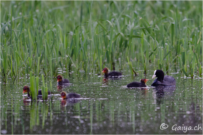 Famille Bord de l´Orbe, Vallée de Joux (VD), Juin 2012 - Référence: 303- NIKON D7000, à 500 mm (750 mm), f/5.0, 1/250 s, 640 ISO Foulque macrouleFulica atra