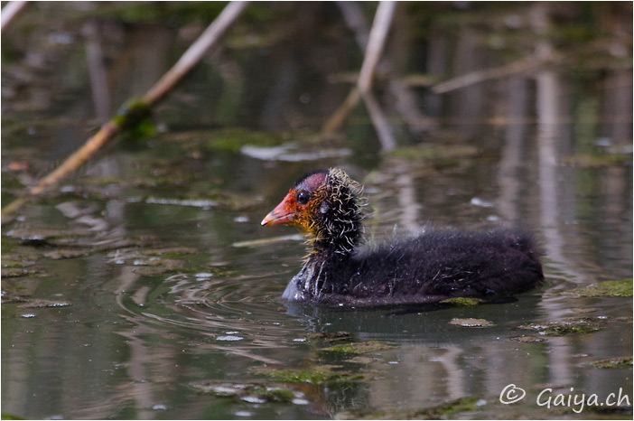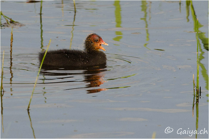 Juvénile Bord de l´Orbe, Vallée de Joux (VD), Juin 2012 - Référence: 304- NIKON D7000, à 500 mm (750 mm), f/7.1, 1/1000 s, 640 ISO Foulque macrouleFulica atra
