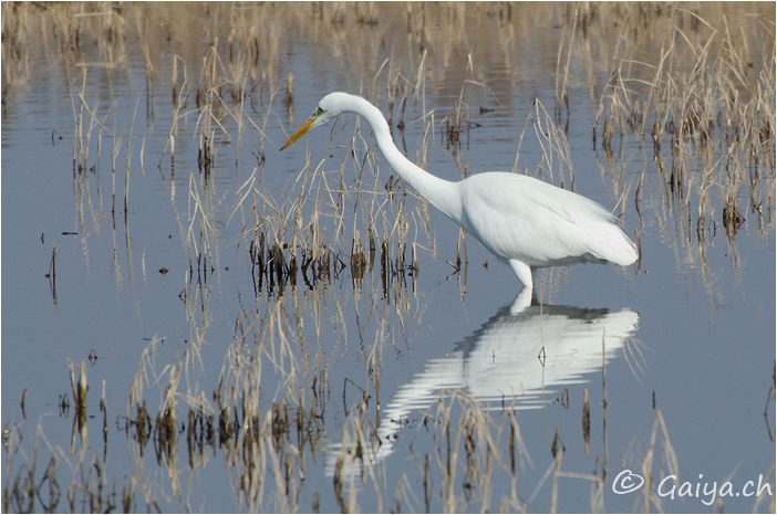 Marais de Sionnet (GE), Mars 2012 - Référence: 99- NIKON D7000, à 700 mm (1050 mm), f/6.3, 1/500 s, 250 ISO Grande aigretteEgretta alba