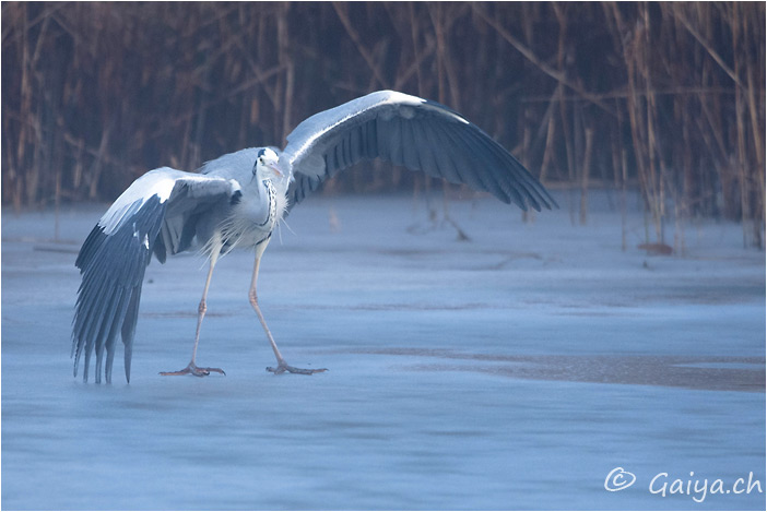 Ca glisse! Centre Pro Natura de Champ-Pittet (VD), Janvier 2017 - Référence: 716- NIKON D7200, à 500 mm (750 mm), f/5.0, 1/500 s, 1800 ISO Héron cendréArdea cinerea
