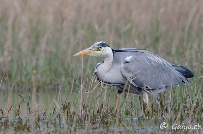 Marais de Sionnet (GE), Avril 2012 - Référence: 172- NIKON D7000, à 500 mm (750 mm), f/7.1, 1/500 s, 800 ISO Héron cendréArdea cinerea