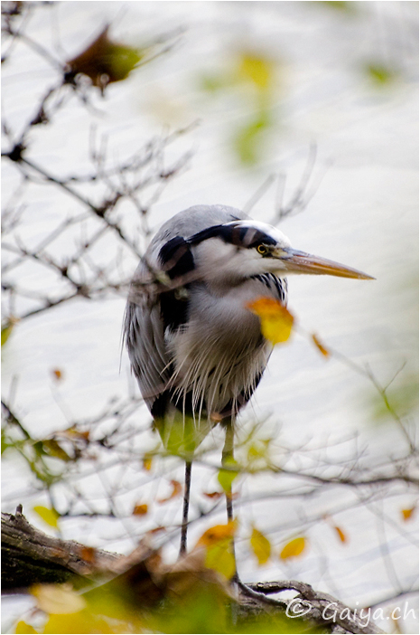 Bords de l´Arve (GE), Novembre 2011 - Référence: 87- NIKON D7000, à 500 mm (750 mm), f/5.0, 1/200 s, 800 ISO Héron cendréArdea cinerea
