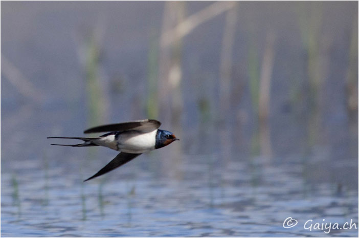 Marais de Sionnet (GE), Avril 2012 - Référence: 194- NIKON D7000, à 500 mm (750 mm), f/5.0, 1/2000 s, 400 ISO Hirondelle rustiqueHirundo rustica