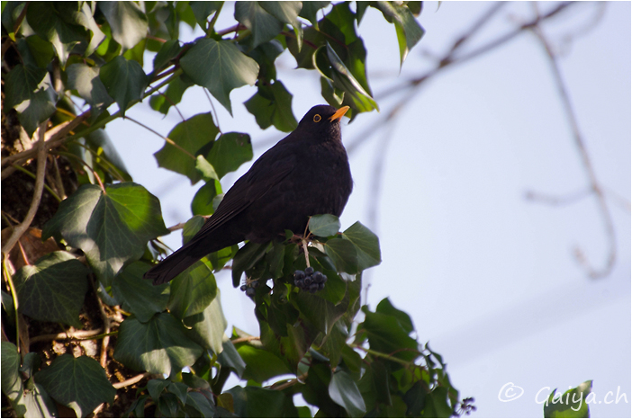 Les Allues Laconnex (GE), Septembre 2011 - Référence: 4- NIKON D7000, à 300 mm (450 mm), f/5.6, 1/1000 s, 640 ISO Merle noirTurdus merula