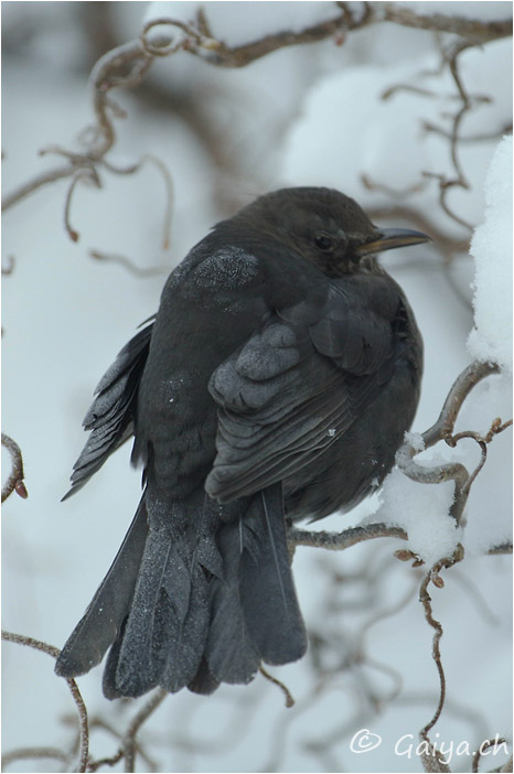 Femelle adulte Les Arêtes, La Chaux-de-Fonds (NE), Décembre 2012 - Référence: 402- NIKON D7000, à 500 mm (750 mm), f/4.5, 1/125 s, 800 ISO Merle noirTurdus merula