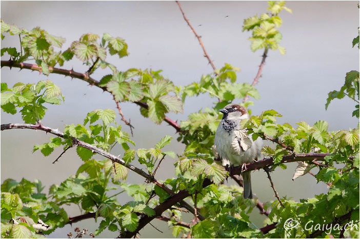 Rouelbeau (GE), Avril 2012 - Référence: 203- NIKON D7000, à 500 mm (750 mm), f/8.0, 1/250 s, 250 ISO Moineau domestiquePasser domesticus