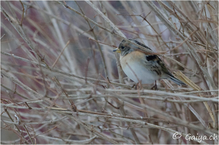 Les Arêtes, La Chaux-de-Fonds (NE), Mars 2013 - Référence: 452- NIKON D7000, à 500 mm (750 mm), f/9.0, 1/100 s, 1600 ISO Pinson du NordFringilla montifringilla