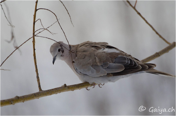 Les Arêtes, La Chaux-de-Fonds (NE), Décembre 2012 - Référence: 397- NIKON D7000, à 500 mm (750 mm), f/6.3, 1/400 s, 800 ISO Tourterelle turqueStreptopelia decaocto