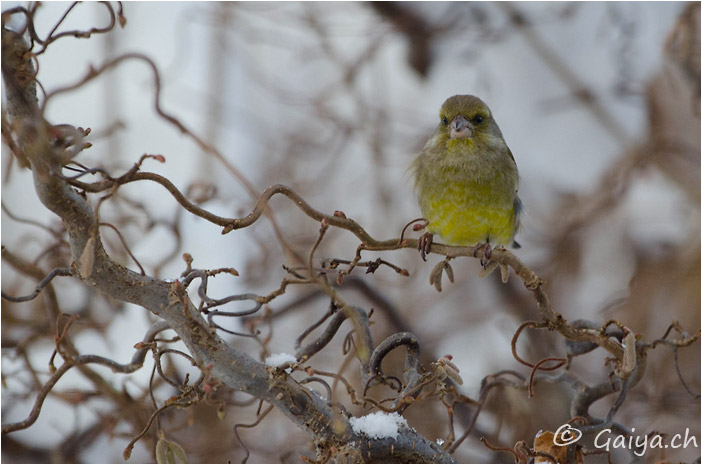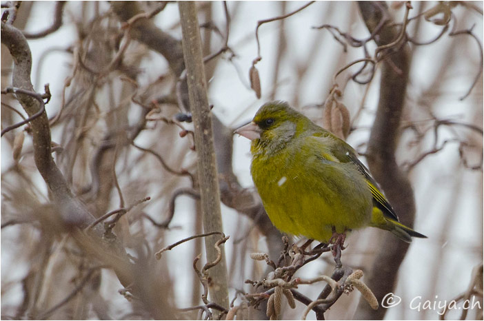 Les Arêtes, La Chaux-de-Fonds (NE), Décembre 2012 - Référence: 400- NIKON D7000, à 500 mm (750 mm), f/5.6, 1/125 s, 800 ISO Verdier d´EuropeCarduelis chloris