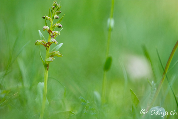 Orchis grenouille Coeloglossum virideOrchidacées, 5-20 (cm), fleurit de mai à juillet, entre 800 et 3000 (m), Trés fréquent,