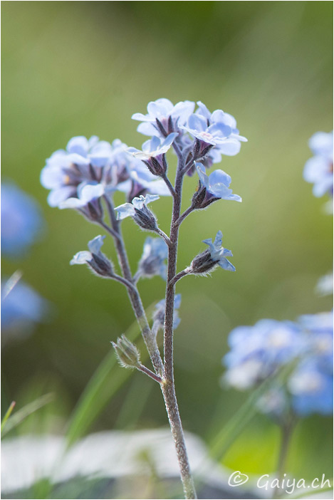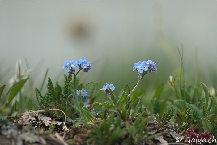 Myosotis alpestre Myosotis alpestrisBoraginacées, 5-15 (cm), fleurit de juin à juillet, entre 1500 et 3000 (m), Trés fréquent,