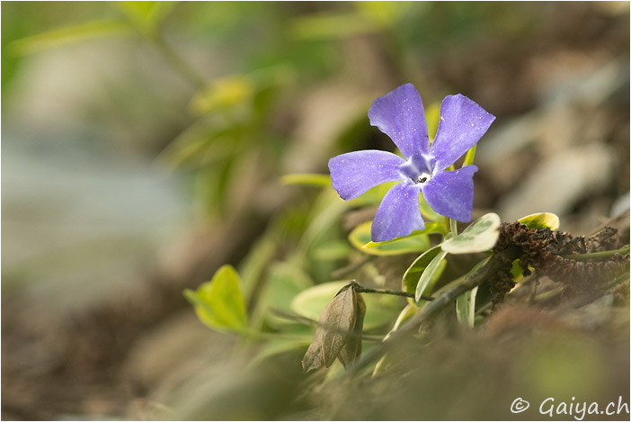 Petite pervenche Vinca minorApocynacées, 10-20 (cm), fleurit de avril à mai, entre 200 et 1500 (m), Fréquent, Faiblement toxique
