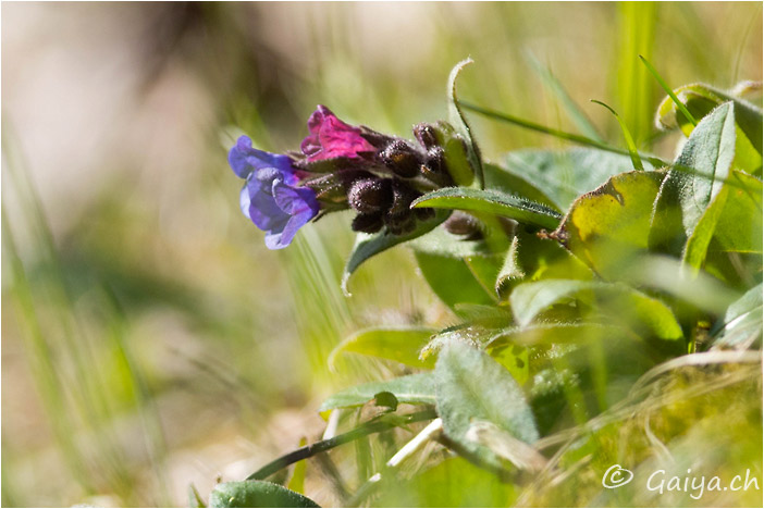Pulmonaire sombre Pulmonaria obscuraBoraginacées, 10-30 (cm), fleurit de mars à mai, entre 200 et 1500 (m), Peu fréquent,
