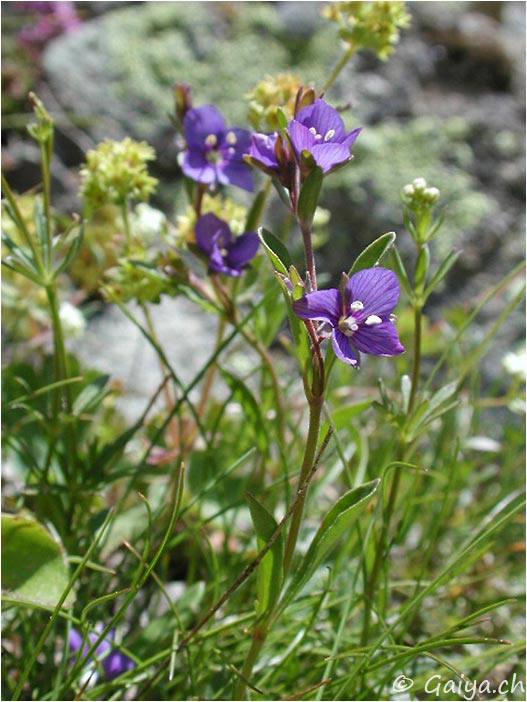 Véronique buissonnante Veronica fratiansScrophulariacées, 5-20 (cm), fleurit de juin à juillet, entre 1200 et 2700 (m), Très fréquent,