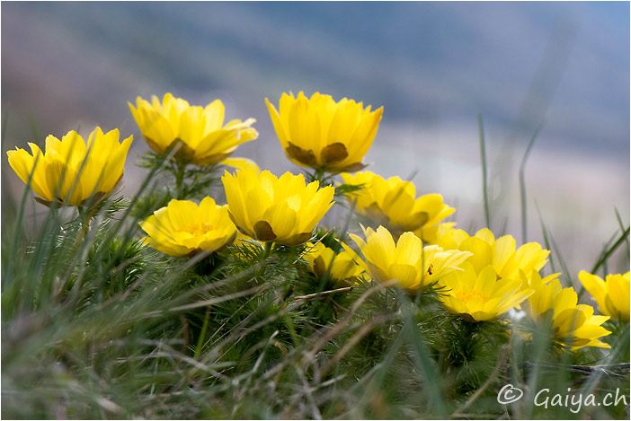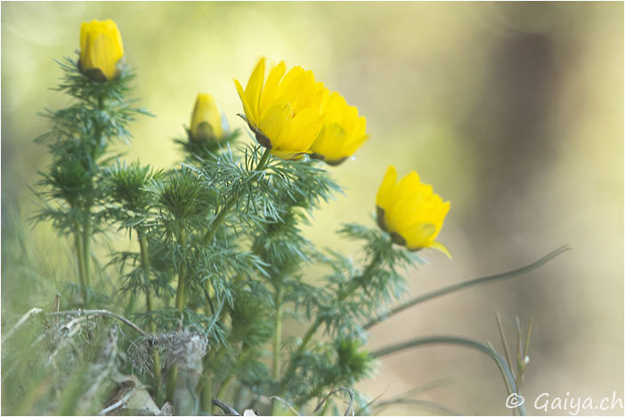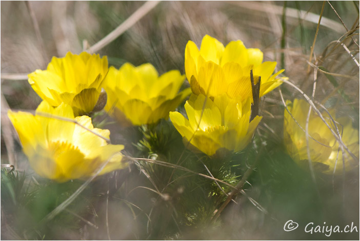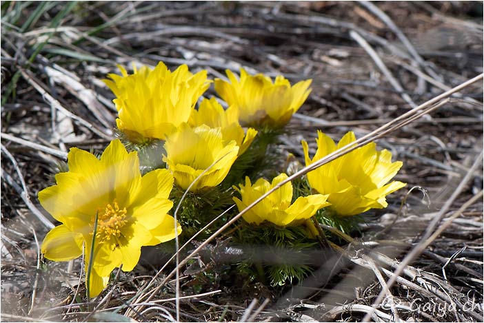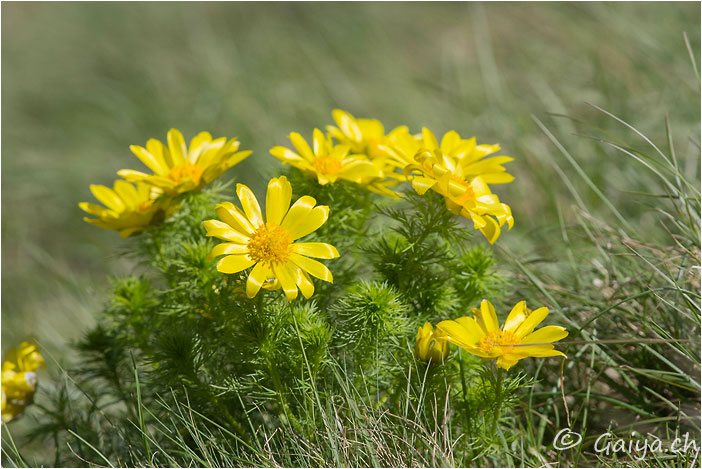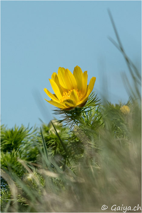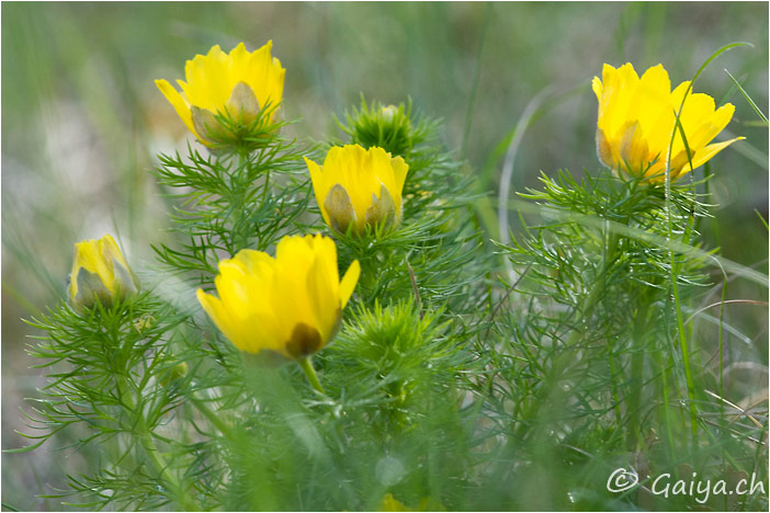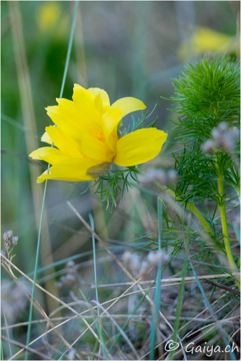 Adonis du printemps Adonis vernalisRenonculacées, 10-30 (cm), fleurit de avril à mai, entre 200 et 1500 (m), Très rare, Toxique