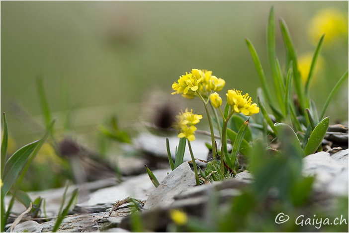 Drave faux aïzoon Drava aizoidesBrassicacées, 5-10 (cm), fleurit de février à juillet, entre 800 et 3000 (m), Fréquent,