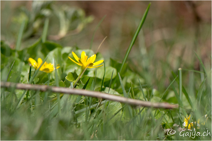 Ficaire Ranunculus facariaRenonculacées, 10-30 (cm), fleurit de mars à avril, entre 200 et 1500 (m), Fréquent, Faiblement toxique