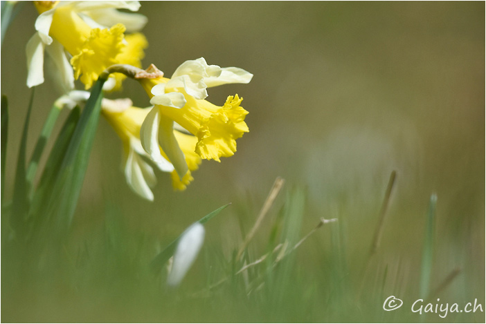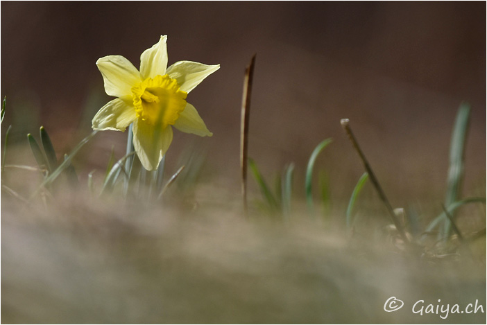 Jonquille Narcissus pseudonarcissusAmaryllidacées, 15-40 (cm), fleurit de mars à avril, entre 800 et 2300 (m), Rare, Faiblement toxique