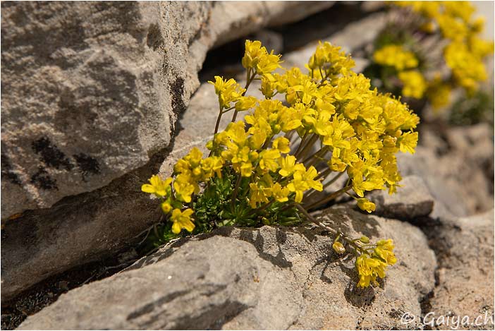 Saxifrage faux aïzoon Saxyfraga aizoidesSaxifragacées, 5-20 (cm), fleurit de juin à août, entre 800 et 3000 (m), Trés fréquent,