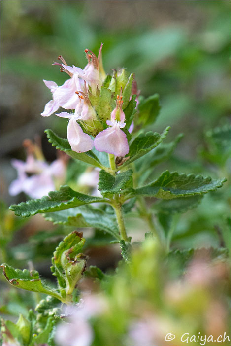 Germandrée petit chêne Teucrium chamaedrysLamiacées, 10-25 (cm), fleurit de juin à août, entre 200 et 2300 (m), Peu fréquent,