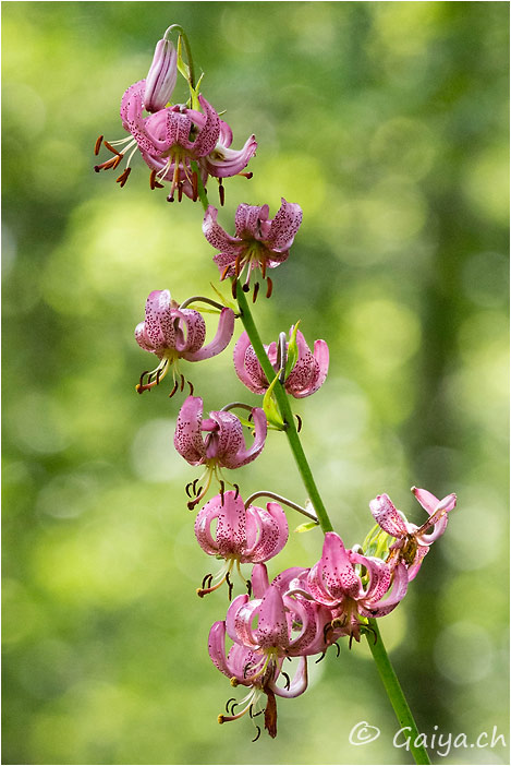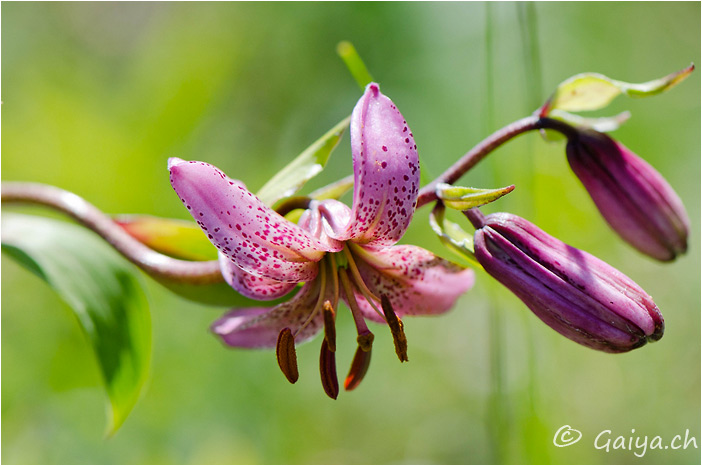 Lis martagon Lillium martagonLiliacées, 30-90 (cm), fleurit de juin à juillet, entre 200 et 2300 (m), Trés fréquent,