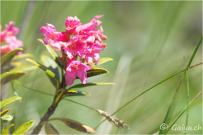 Rhododendron ferrugineux Rhododendron ferrugineumEricacées, 50-100 (cm), fleurit de juin à août, entre 800 et 2300 (m), Trés fréquent, Toxique