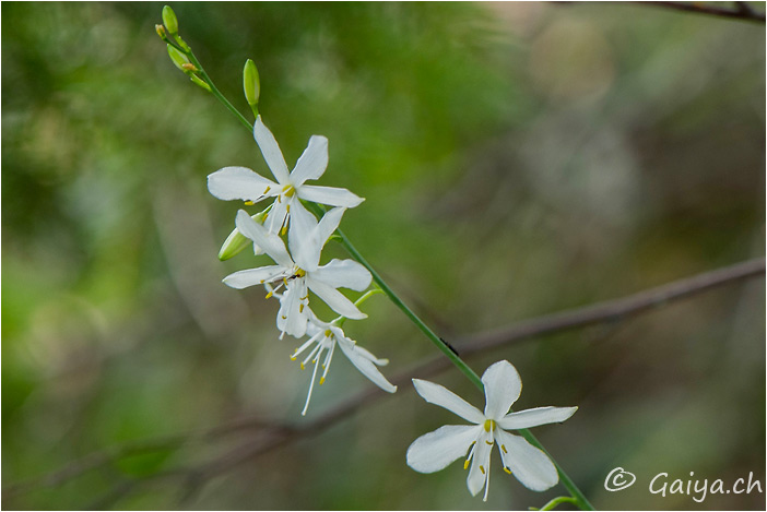 Anthéricum à fleurs de lis Anthericum liliagoLiliacées, 30-60 (cm), fleurit de mai à juin, entre 200 et 2300 (m), Peu fréquent,