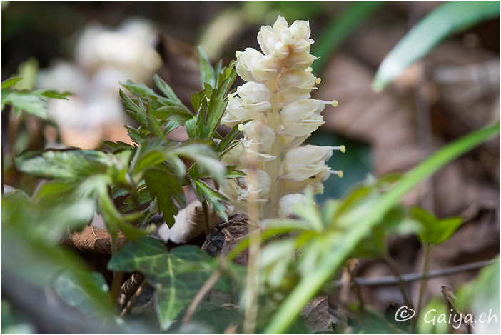 Lathrée écailleuse Lathraea squamariaScrophulariacées, 5-25 (cm), fleurit de mars à mai, entre 200 et 1500 (m), Rare,